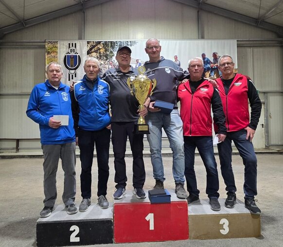 Bereits seit 2014 startet die Bouleabteilung, jeweils im Januar, mit einem vereinsinternen Glühweinturnier in das neue Jahr. Diesmal haben sich 10 Doppel einen Kampf um den Wanderpokal geliefert. Mit "Hein" Heils war es ausgerechnet der älteste Teilnehmer, der mit seinem Partner Fritz Wallasch das beste Ergebnis aus vier Spielrunden erreichte. Drei Siege und 40:34 Punkte genügten, um sich gegenüber den Zweitplatzierten Arno Lemberg und Gerd Tangenberg zu behaupten, die zwar auch drei Siege vorweisen konnten, aber über das schlechtere Punktverhältnis verfügten. Den dritten Platz belegten Herbert Ramaker und Günter Danzinger mit ebenfalls drei Siegen.