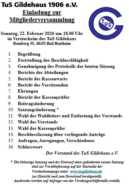 Die nächste Mitgliederversammlung findet am Sonntag, den 22. Februar 2026 um 18.00 Uhr statt.